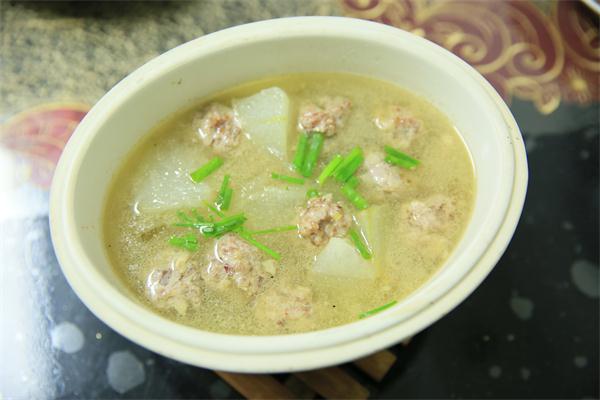 制作方法:夾心肉洗凈、剁碎,火腿切丁,生姜切末,備用;將上述材料混合,加入適量鹽、糖和料酒,再加入一個蛋清,用手混合均勻,再反復摔打至少10分鐘,至肉有彈性,再捏成大小適宜的小球,備用;豬大骨熬湯,備用;冬瓜洗干凈、切片,起油鍋略炒,加入大骨湯,燒開后逐一放入肉丸,再根據個人口味加入鹽等調味料,待肉丸燒熟即可起鍋。